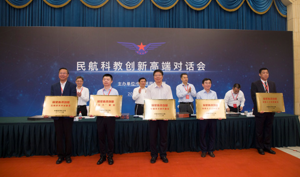展会同期,施大宁和民航飞机健康监测与智能维护重点实验室主任左洪福应邀参加了“民航科教创新高端对话会”,对话由行业内知名人士共同交流民航科教创新理念,展望民航科教创新发展蓝图。对话开始前还进行了颁奖授牌仪式,冯正霖局长和董志毅副局长为我校获批的“民航创新人才发展基地”和“民航飞机健康监测与智能维护重点实验室”进行授牌。