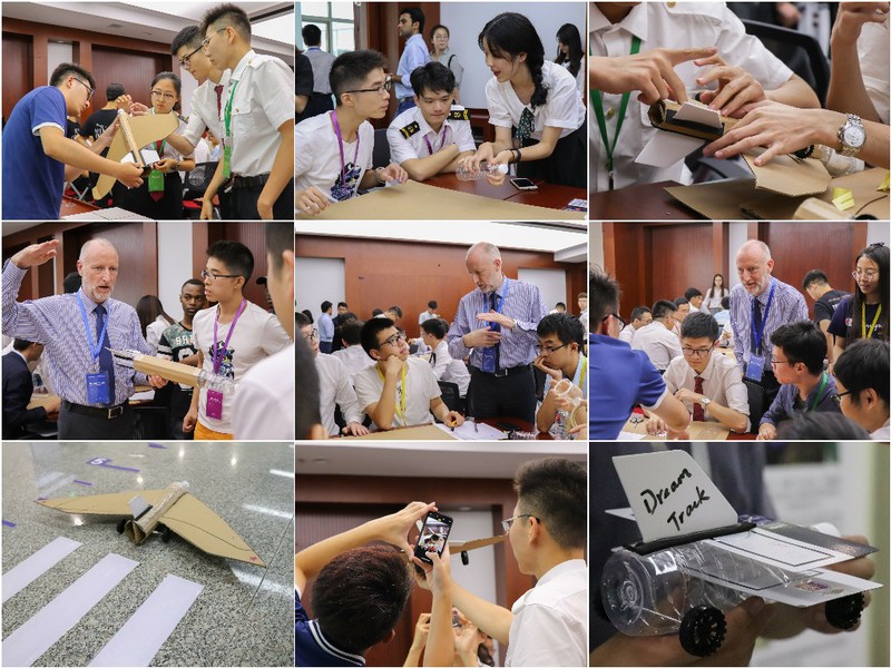 经过一个多小时的商讨、试验和制作,每组完成的飞机模型将在主办方特制的模拟跑道上进行“试飞”,由Dermot Swan先生根据飞行航迹判定最终的一二名。