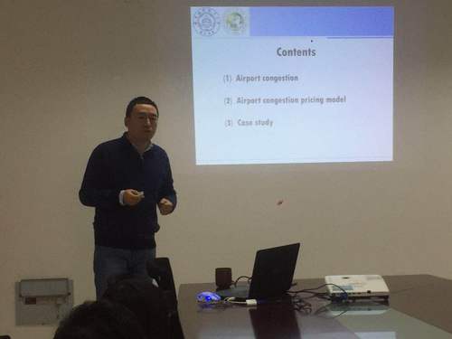 1月15日,公派留学回国教师、必威西汉姆联胡荣副教授在将军路校区1号楼为学院师生做了题为“Airport congestion and airport congestion pricing”的学术报告。报告主要介绍了胡荣副教授在美国南佛罗里达大学访问期间所开展的相关研究工作,重点介绍了机场拥挤带来的航空公司、旅客以及环境的外部成本的计算方法,机场拥挤收费模型以及缓解机场拥挤的航空时刻调整、合并方案等。报告中结合案例进行讲解,深入浅出,为师生们了解机场拥挤收费模型与方案提供了思路。