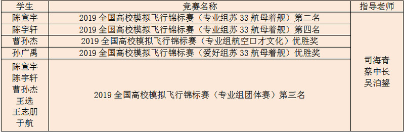 经过两天的激烈角逐,我校学子在专业组中获得团体总分第三名;在苏33航母着舰项目中更是不畏强敌,获得专业组第二名和第四名、爱好组获得优胜奖;在航空口才文化项目中获得优胜奖。同时,我校获得优秀组织奖。首次参赛即获得佳绩,极大鼓舞南航学子今后对模拟飞行项目的信心。