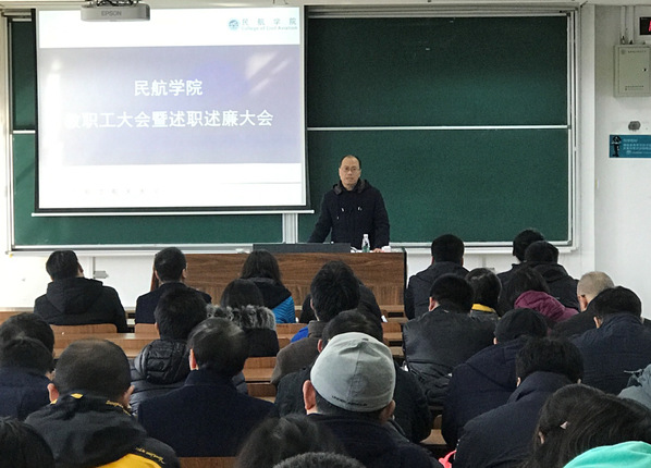 胡明华从加快民航特色办学步伐,师资队伍建设扎实推进,学科科研及研究生培养工作,教学及专业建设工作,飞行办学,董事会及培训工作,学生教育管理工作,国际交流与合作工作等方面对全院2019年度行政工作做了总结报告。