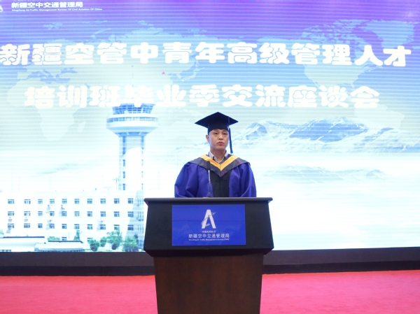 仪式后,胡明华院长向毕业学员表示祝贺,向民航新疆空管局长期以来给与学院的关心和支持表达感谢。他介绍了学校“民航特色发展”战略以及“一校两地四区”的办学新模式,学院将积极响应“一带一路”国家战略,在“智慧空管”等方面继续深化与新疆空管局的战略合作,助推新疆民航发展。