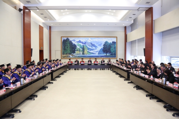 随后,胡明华、王英、柯世堂为周海峰等35名毕业学员拨流苏、颁发学位证书并合影留念。