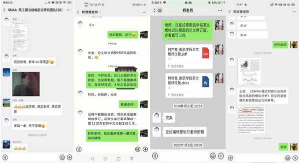 为响应学校新型冠状病毒感染的肺炎疫情防控工作组的号召,学院柯世堂教授带领的风工程与结构防灾研究团队延期返校,但假期科研的脚步不会停止。在疫情爆发前夕,团队召开了2019年度年终科研总结汇报组会,课题组老师对每位学生的汇报进行了点评,并寄语同学们继续努力,做一个有情怀的人,争取在假期实现弯道超车。在疫情期间,课题组科研工作转为线上指导,老师结合每位学生的科研进度因材施教布置了科研任务,每天通过视频电话修改学生的小论文,对学生的科研问题做到及时答疑,并为指导的本科生创新项目布置了网课学习任务与专利撰写要求。