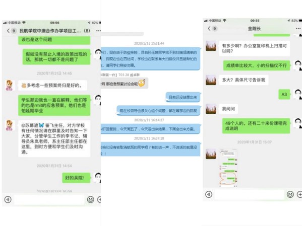 2.全世界抗疫形势严峻,很多航班已被取消,并且澳洲也出台了禁止华人入境政策。在这种情境下,学生们非常焦急,忐忑不安,顿时QQ和微信变成了热线。老师们全天在线,安抚学生情绪,并积极与澳方大学沟通,寻找解决方案。