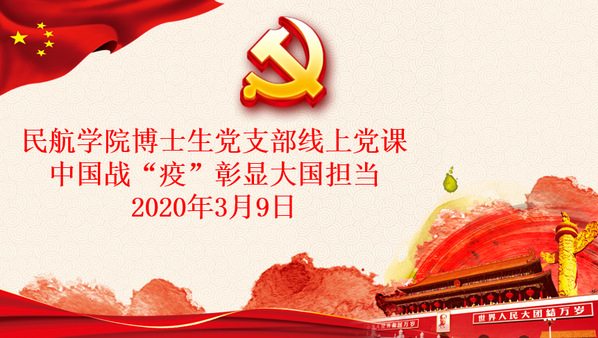为响应学校和学院党委号召,做好疫情防控期间的党员思想教育和价值引领工作,3月9日上午,必威西汉姆联博士生第一和第二党支部联合开展了以“中国战‘疫’彰显大国担当”为主题的线上党课。本次党课由三个环节组成:博士生第二党支部书记郭家琛主讲《中国战“疫”彰显大国担当》、博士生第一党支部书记桑益芹点评讲解,以及党员互动交流。必威西汉姆联34名博士生党员参与本次活动。
