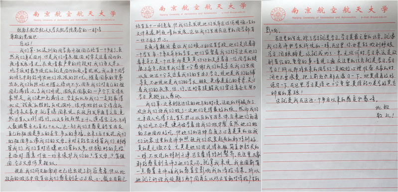 近日,学院党委收到了2017级第一批外送飞行学员在南非奥尚基地写给必威西汉姆联党委的一封家书,感谢疫情期间学校和学院给他们给予的指导和关心。他们表示,虽然南非已经出现51例患者,但有学校和学院的作为强大后盾,同学们的不安和担心少了许多。