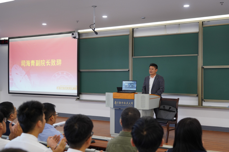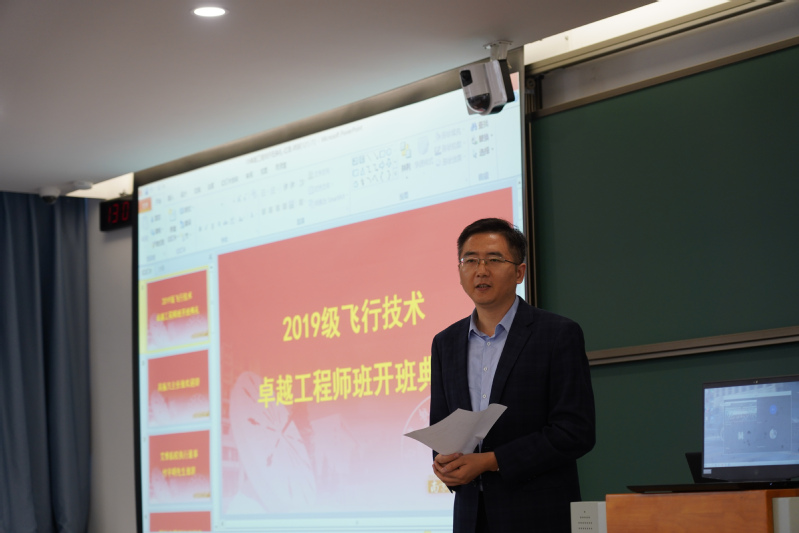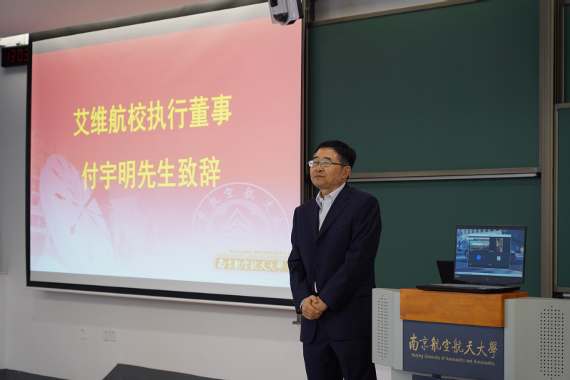 付宇明表示来到天目湖校区,感受到了学校先进的教学理念和办学环境,希望同学们能积极参与进学校的学习中,把卓越工程师班开展地有品牌,有特色,同时付宇明也祝愿同学们能够做到热爱飞行,享受飞行,早日为国家民航事业做贡献。