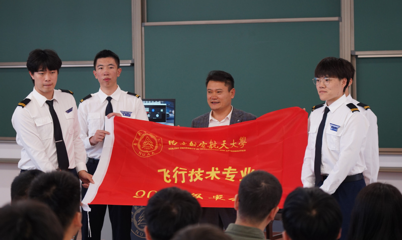 随后,司海青向卓越班班长授旗,标志着2019级飞行技术卓越班正式组建。贡海俊向行业导师颁发聘书;韩冰为班主任颁发聘书。最后,全体飞行技术卓越班开班典礼参加人员合影留念。
