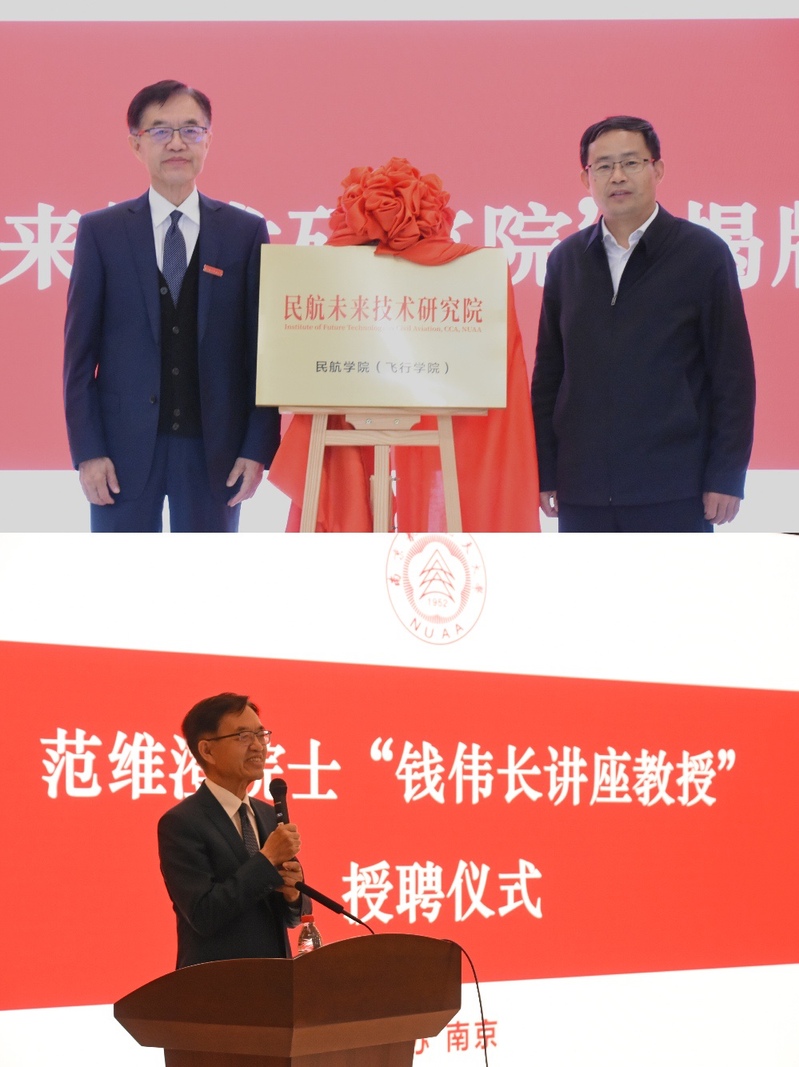 随后,举行了“民航未来技术研究院”成立揭牌仪式,单忠德校长和范维澄院士共同为“民航未来技术研究院”揭牌。