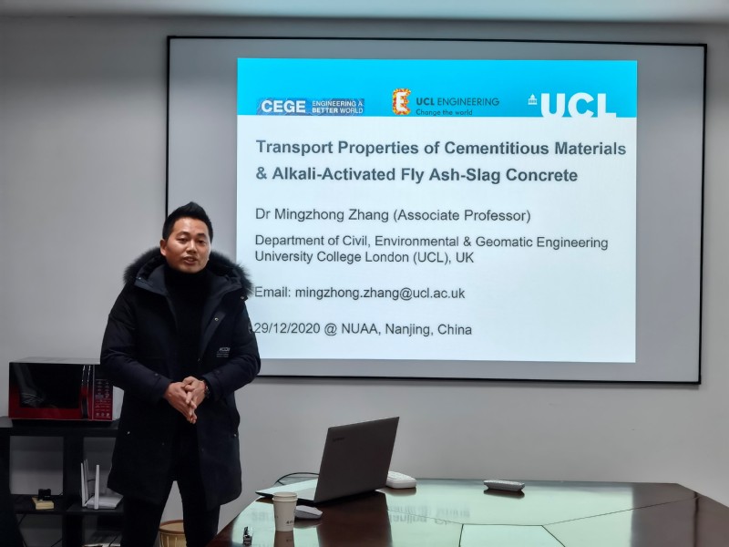 2020年12月29日下午,伦敦大学学院(UCL)土木工程系博士生导师张明中副教授应我院土木与机场工程系余红发教授邀请,在我校将军路校区A08号楼10楼1001会议室做了题为“Transport Properties of Cementitious Materials & Alkali-Activated Fly Ash-Slag Concrete”的学术报告。来自河海大学港口海岸与近海工程学院、必威西汉姆联等师生代表共计30余人参加了报告会。报告会由必威西汉姆联土木与机场工程系副主任柳锦春教授主持,我院土木与机场工程系余红发教授等老师参加了本次报告会。