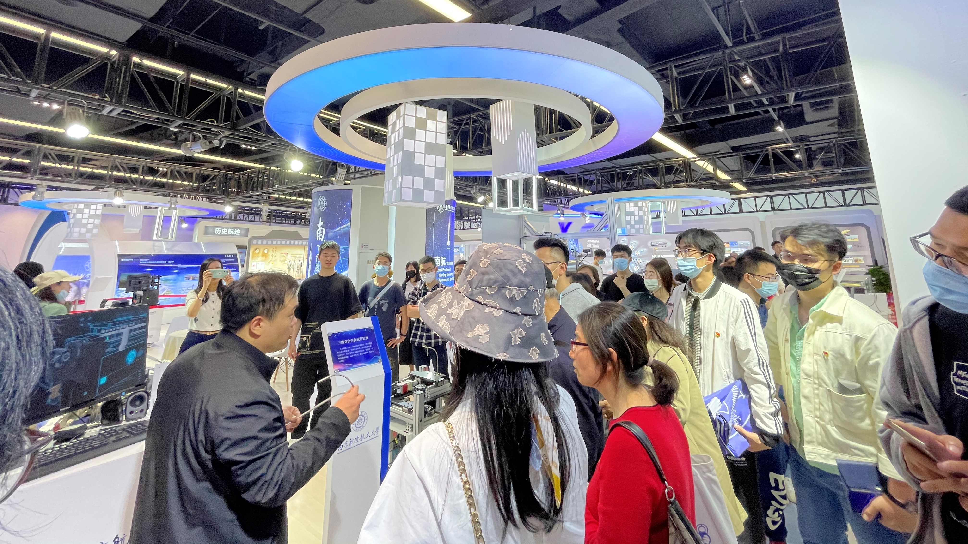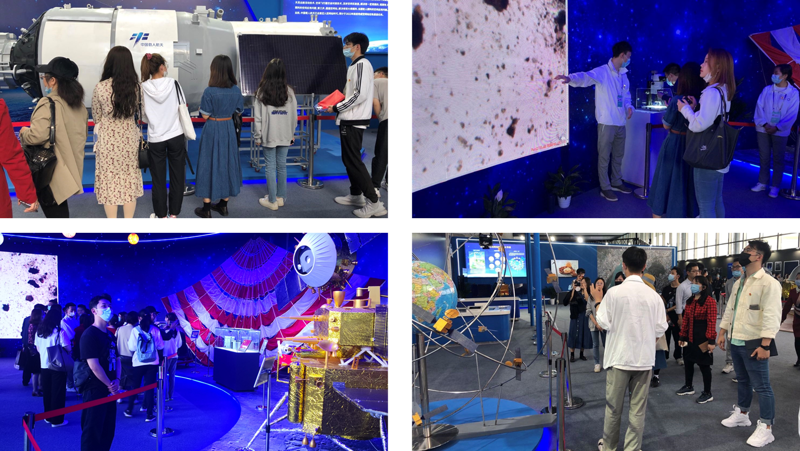 活动中,大家首先参观了我校航空航天展区,随后参观了“航天放飞中国梦”科普巡展。展出的重大航天工程航天器模型、实物展品,特别是月球样品实物及嫦娥五号返回舱、降落伞等实物,吸引大家驻足参观和热烈交流。