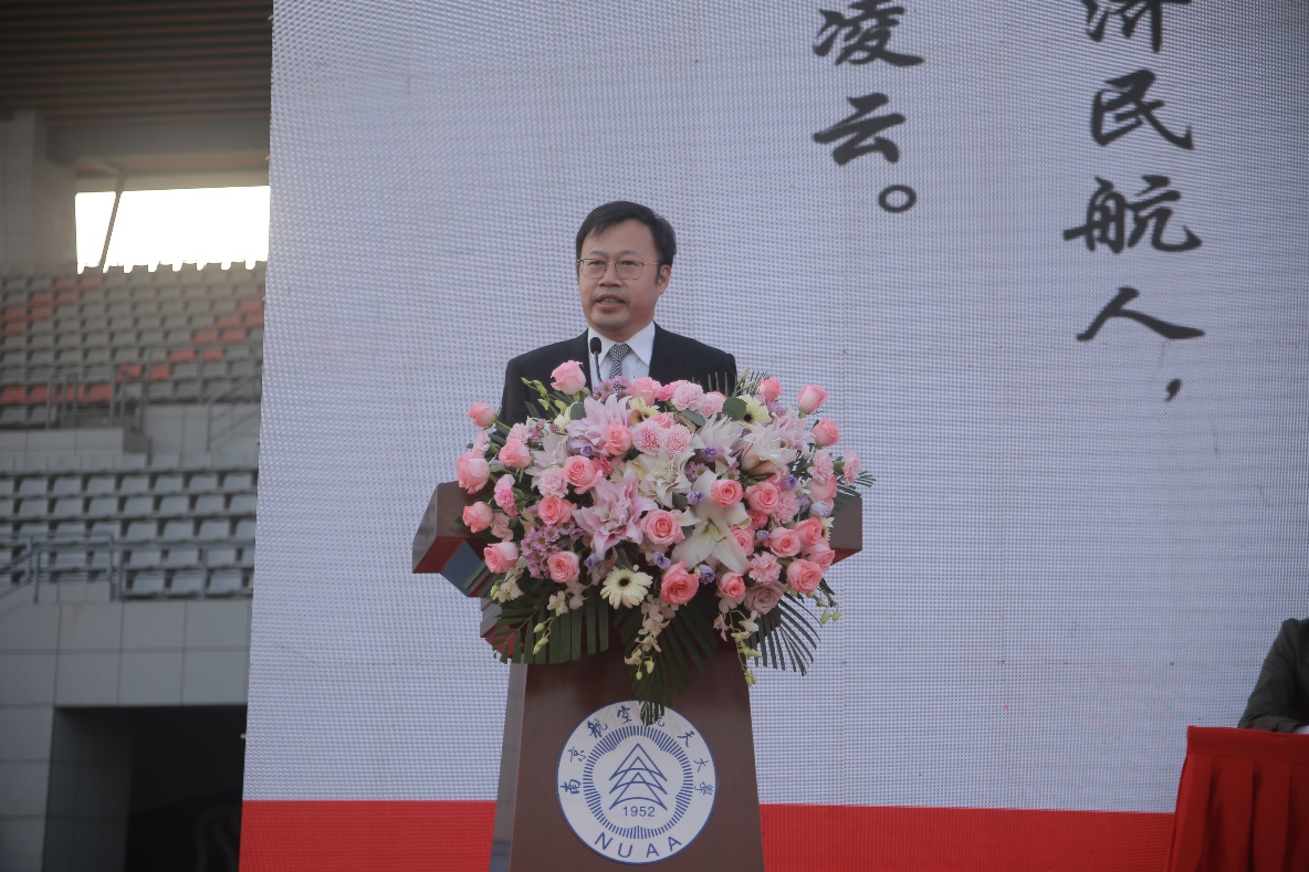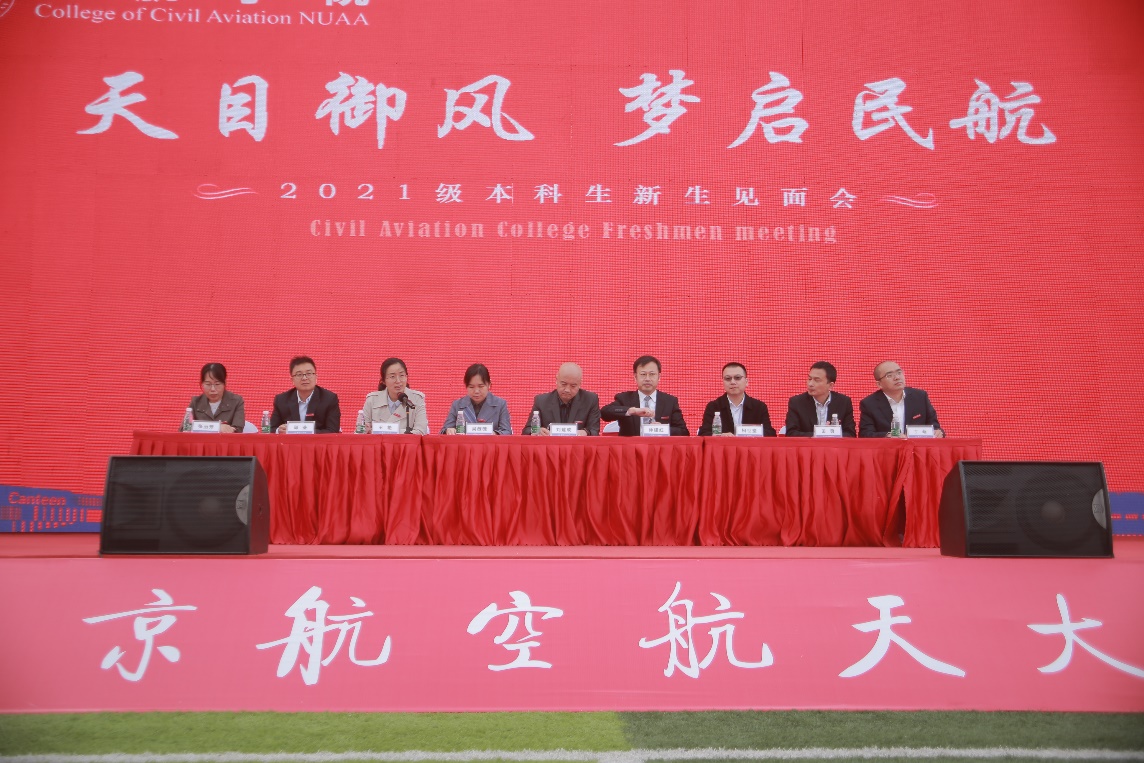 随后,空中交通系主任田勇、交通运输系主任邵荃、民航工程系丁萌、土木与机场工程系副主任张丽芳逐一上台与同学们进行互动,并为本系学生送上寄语,就新生们如何度过人生中最为重要的大学时光,为大家提供了宝贵的建议。希望同学们及时转变角色意识,明确新的人生目标与规划;以坚忍不拔的毅力,勇敢应对挫折,从容书写人生。