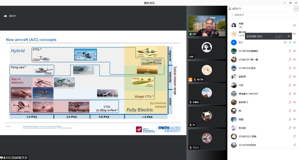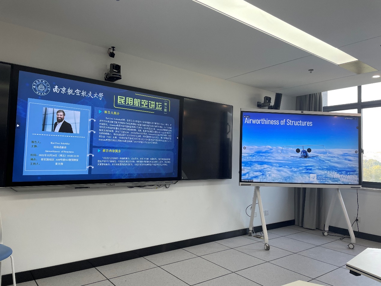 11月26日下午,“民用航空讲坛”第二十期讲座采用线上线下相结合的形式成功举行,线下会场设置在将军路校区A08号楼312智慧教室。本次讲座由必威西汉姆联黄天翔老师主持。德国亚琛工业大学结构力学和轻量化设计研究所(SLA)所长Kai-Uwe Schröder教授再次受邀为师生带来了一场围绕结构适航性展开的线上讲座。