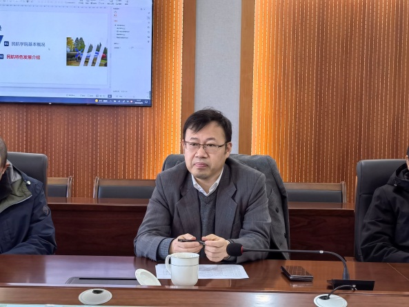 柯世堂副院长首先对罗亮生院长一行来院开展交流研讨表示热烈欢迎,并介绍了双方到会领导及参会人员。随后,从学院发展历程、学科专业建设、师资人才队伍、民航特色发展等方面介绍了学院的基本情况。