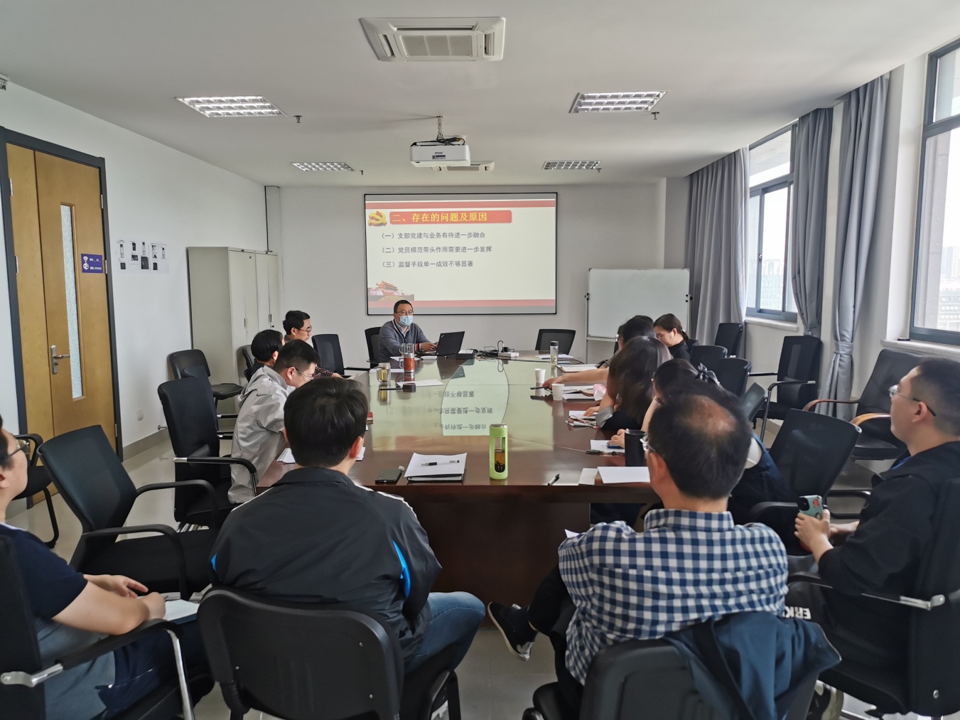 首先,党支部书记胡荣汇报了上一年度的党支部工作情况。分别从“强化主体责任”、“加强理论学习”、“提高组织建设”、“贴合实际开展党风廉政教育”四个方面进行详细汇报,同时指出了党支部目前存在的问题及下一步的工作措施。