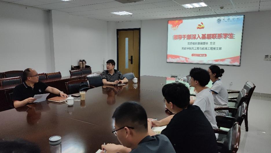 会后,方正同风工程与机场工程纵向学生党支部全体党员开展领导干部深入基层联系学生活动,详细了解支部发展现状、活动开展情况及成员学习状态,充分肯定了支部的学习氛围及团队凝聚力,并结合自身工作岗位就支部发展提出了两点建议:一是党支部牵头引领学科融合发展,二是创新活动形式以提高成员参与度。
