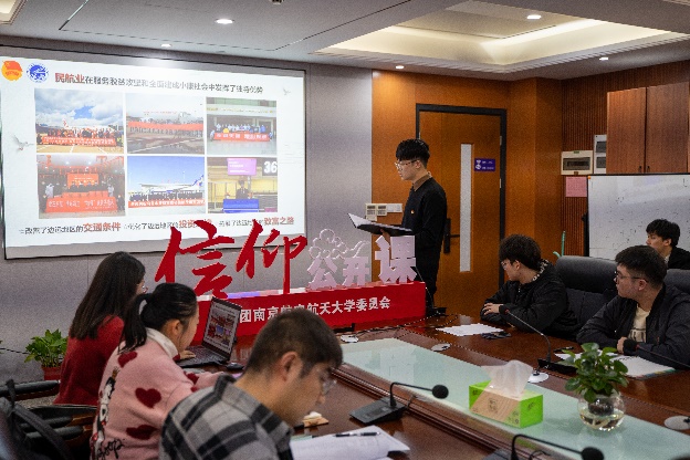 紧接着,丁文浩从公路、铁路、民航三个角度,讲述“交通扶贫”规划为脱贫攻坚和全面建成小康社会提供了坚实有力的客货运保障。从具备条件的乡镇和建制村100%通硬化路、通客车的“两通”目标基本完成,到穿行于连绵山区数十年不涨价的“扶贫小慢车”,再到新机场、新航线架起无数高山大漠通往四海的天路……脱贫致富靠发展,发展先行是交通。交通强国建设,理应成为我国经济社会发展的开路先锋。最后,丁文浩勉励各位民航青年,将个人小梦想融入中华民族伟大复兴的大梦想,积极投身交通强国建设,让青春在全面建设社会主义现代化国家的火热实践中绽放绚丽之花!