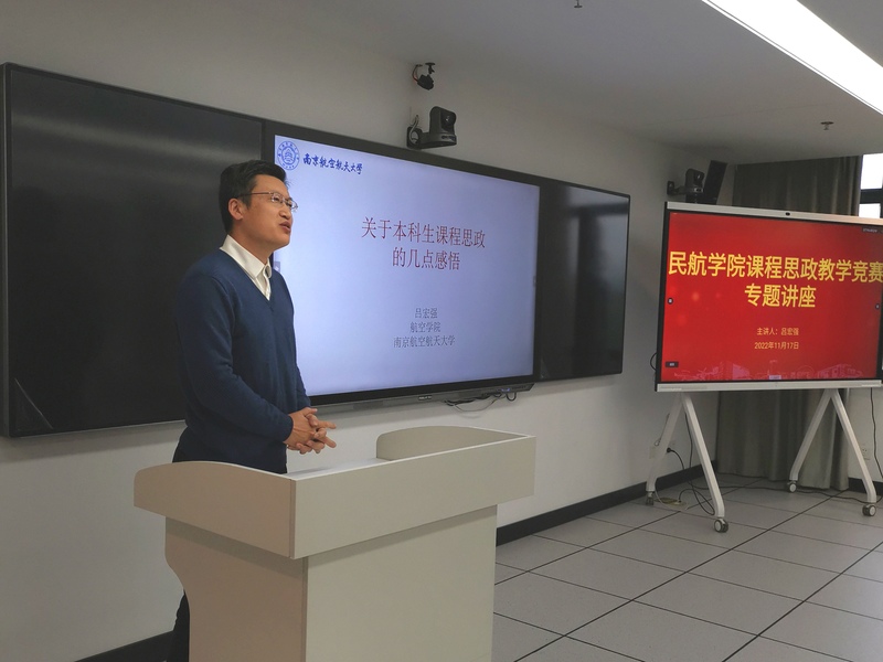 为进一步推进课程思政建设各项工作、提升教师课程思政教学水平,2022年11月17日上午,必威西汉姆联在312智慧教室举办了课程思政教学竞赛专题讲座。本次讲座邀请曾获得首届学校课程思政教学竞赛特等奖的航空学院吕宏强教授进行分享,来自必威西汉姆联、材料科学与技术学院、计算机科学与技术学院的多名教师参加。