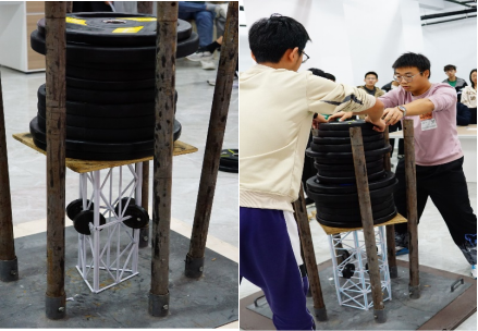 决赛当天,在将军路、天目湖两校区来自不同年级、不同学院的同学们满怀信心的来到比赛现场,等待答辩和加载。今年的赛题与去年相比,取消了对于模型质量的要求,对于模型结构的设计提出了新的挑战。经过激烈的角逐,两校区的各级奖项水落石出,最佳成绩分别是自重197.9g、承重150kg(将军路校区),自重195g、承重135kg(天目湖校区)。各参赛组的优秀作品在现场的加载比拼赢得了参赛同学和老师们热烈的掌声。