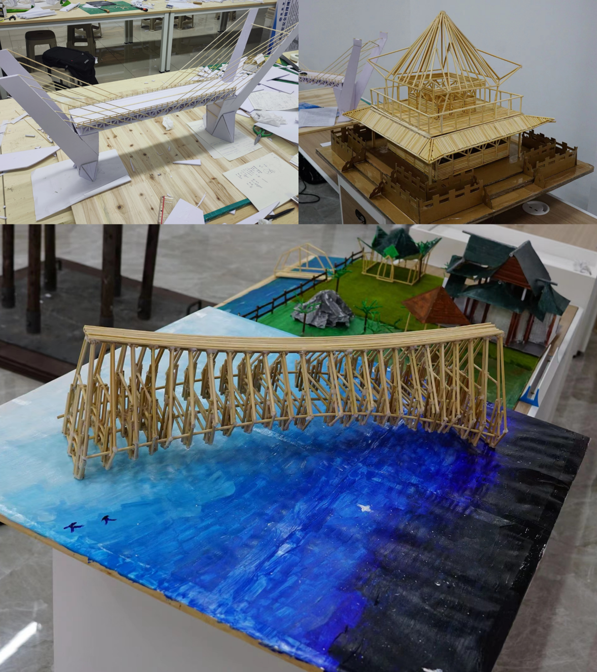 在两校区的模型展示组中,同学们精心准备的作品,也让参与大家眼前焕然一新。答辩过程中更是精彩连连,不仅涉及力学、结构设计方面,也有绿色创新的设计理念。经过精彩的答辩,评委和同学们的共同评分,展示组的作品也决出不同级别的奖项。以下是部分展示组优秀作品。