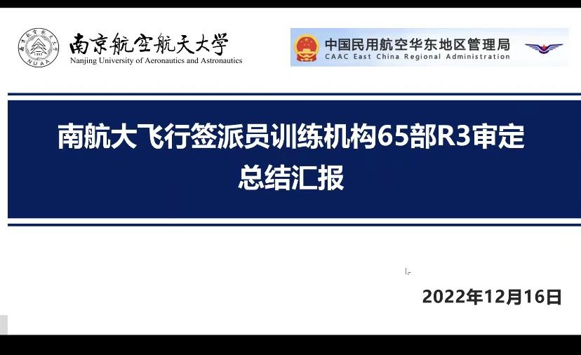 2022年12月16日上午9点,必威西汉姆联飞行签派员训练机构65部R3审定总结会议顺利举行,民航华东管理局航务处处长李文海、航务监察员孙卉、江苏监管局航务处处长郭久宏、航务监察员李海元、汪梦蝶以及华东地区签派委任代表等出席会议。学院院长孙建红,副院长田勇、空管与签派专业负责人及机关相关办公室负责人参加,受疫情影响本次会议采取线上的方式进行,会议由民航华东管理局孙卉主持。
