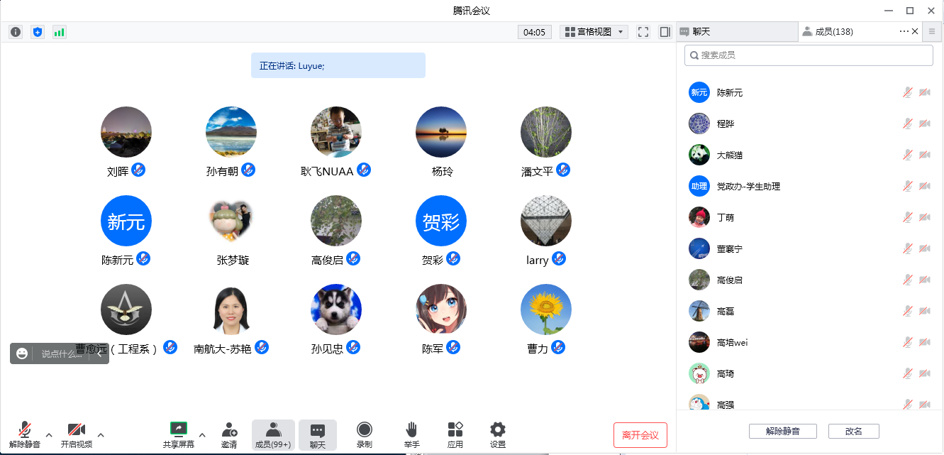 四位副职领导分别就分管工作近期的调整安排和工作要求进行传达。其中,副院长田勇就学期末本科生课程安排及考试调整进行说明;副院长吴薇薇传达研究生院相关工作通知,提醒老师们假期内保障好学生学业的指导工作;副书记王艳通报学院学生离校情况,希望老师们尽快、尽力、尽量动员,留意关心学生学习及心理状况;副院长邵荃对课题项目因疫情影响延期工作进行说明。