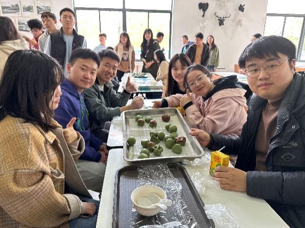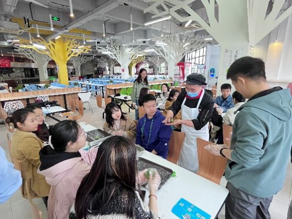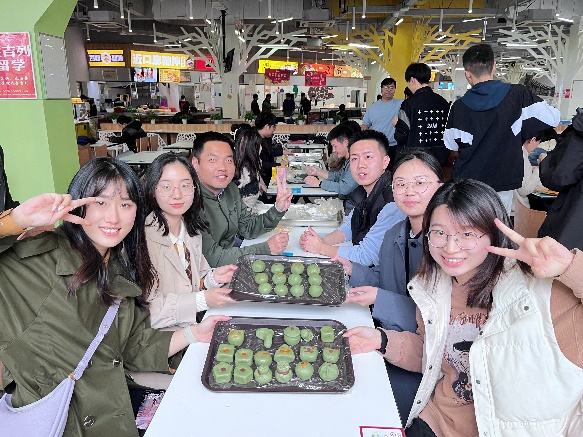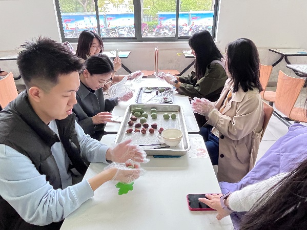 在青团制作环节,师生党员发挥动手能力,一起揉面、包馅,用掺有青汁的糯米皮,包裹进肉松、豆沙、咸蛋黄等馅料,制作出一个个清香扑鼻的绿色团子。在烹饪过程中,师生积极参与到传统文化知识问答环节,与会党员对中华传统节日的认同感不断增强。教职工党员的参与促进了学生支部与教工支部之间的联系与交流,进一步激励广大党员同志新时代新担当新作为,切实增强党支部的凝聚力与战斗力。