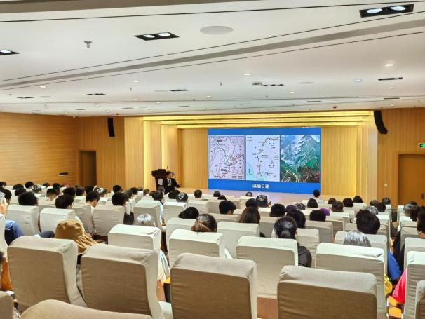 刘道刚从沿革与背景、初心与使命、蓝图与梦想、探索与实践四个方面向师生们介绍了天津市探索交通强国的实践历程。他生动地讲述了我国交通发展的前世今生、天津市交通发展的历史、交通强国天津实施的相关方案以及天津市交通运输委在强国试点示范引领、智慧交通对症施策、重点项目加快建设、科学治理多措并举、货运枢纽补链强链、人民交通全心为民等多个方面所作的探索与实践。党课最后,他以一首《不忘初心》结尾,“万水千山不忘来时路,鲜血浇灌出花开的国度…”将现场气氛再次推向高潮。