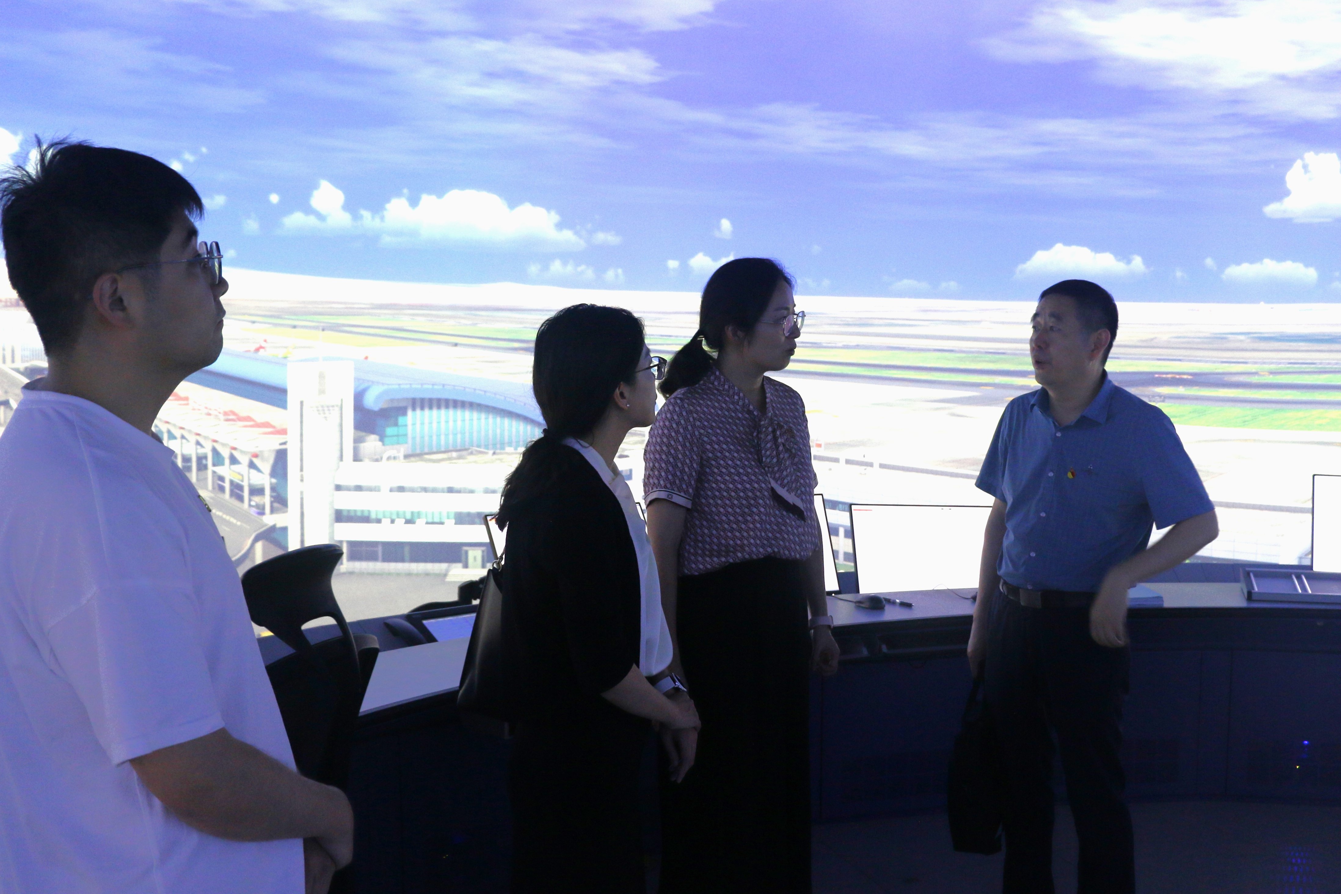 专题学习后,两学院共同参观360°全景塔台模拟机实验室,共同了解民航科技人才培养的过程,深入交流两学院在人才培养合作的着力点。