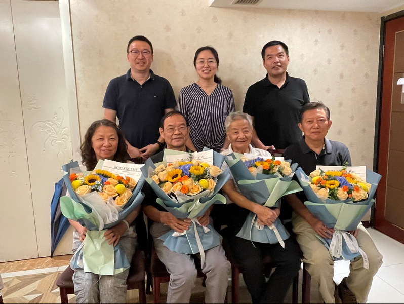 王艳一行与四位退休教师亲切交谈,关切询问了他们的生活情况和身体状况。王艳介绍了学院的发展现状和近年来学院取得的主要工作成绩和进步,并代表学院向四位老师表达了教师节问候,对他们多年来的工作和为学院发展作出的贡献表示诚挚感谢。适逢学院建院三十周年,学院组织策划了系列活动,她代表学院向退休教师们发出邀请,欢迎他们“回家”看看,参加活动。