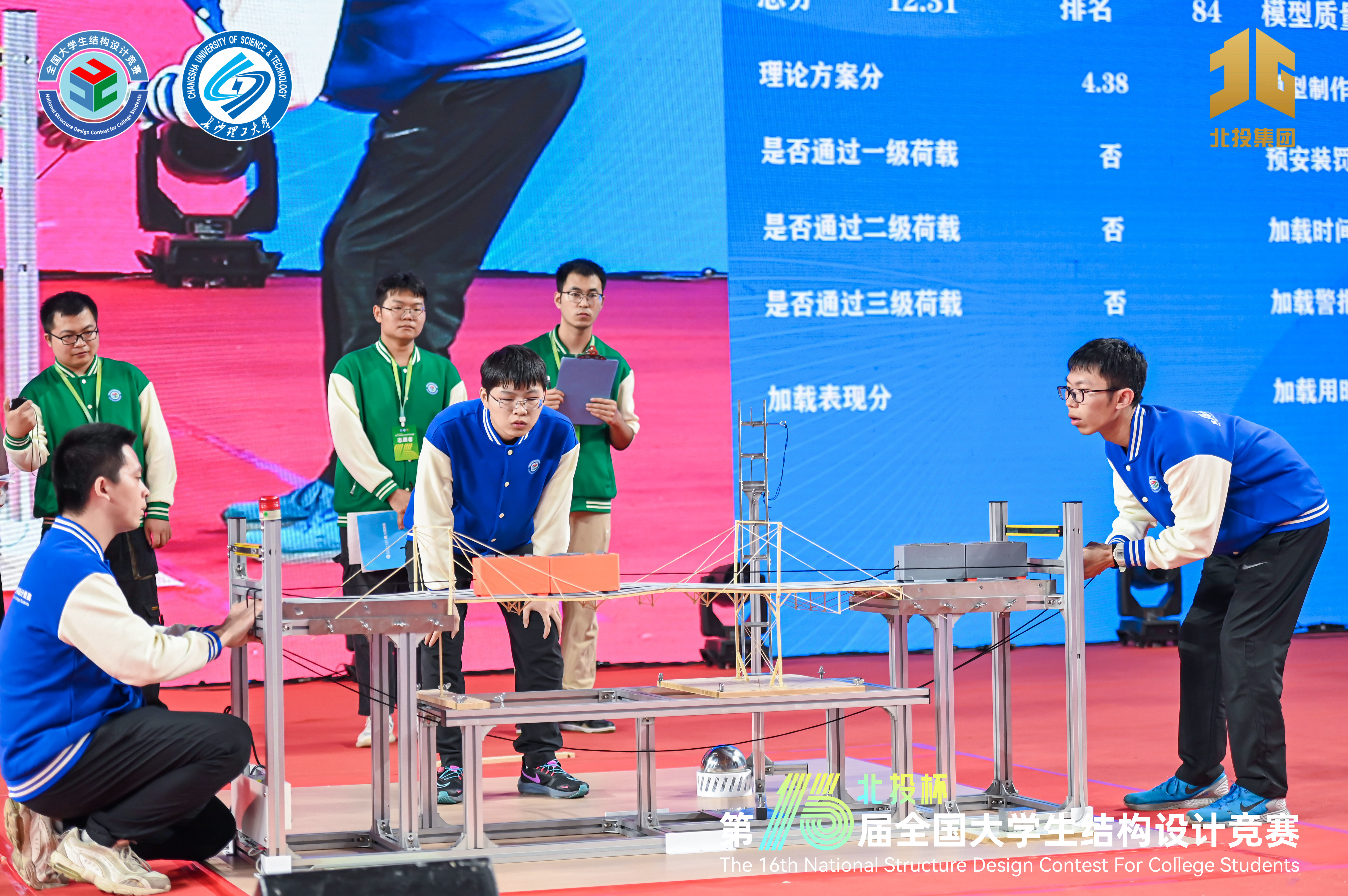 在学院领导的关心支持以及土木系、学工办、教学办等相关老师的指导帮助下,参赛团队经过16.5小时现场模型制作、陈述答辩、模型加载等环节激烈比拼,克服多重困难,以排名19的成绩,获得竞赛一等奖。