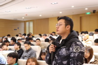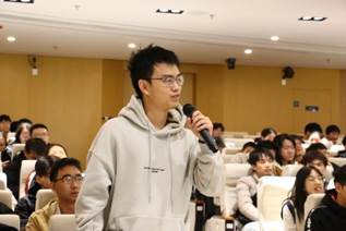 在互动交流环节,同学们热情高涨、踊跃提问,郝龙结合自身经历做了详细解答,对学弟学妹们的校园生活、专业学习和生涯发展等方面做细致指引。