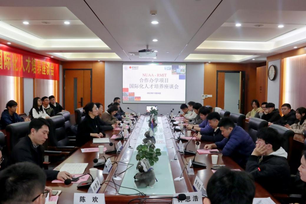 11月26日上午,必威西汉姆联成功举办中澳合作办学项目国际化人才培养座谈会。澳大利亚皇家墨尔本理工大学(RMIT)教师代表Nick Bardell、国际教育学院副院长李勇、澳大利亚教育管理集团(AEMG)南航项目分部主任鉴飞,必威西汉姆联党委副书记王艳、团委书记赵慧文、交通运输系副主任包丹文、中澳班班主任代表高强和刘君强、中澳合作办学项目校友代表以及学生代表参加座谈会。座谈会由交通运输系主任胡荣主持。