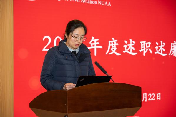 首先,李君以《紧扣“七字要诀”,推进“一融双高”,让七院未来可期》代表学院党委作全面从严治党工作总结,并作个人述职述廉汇报。她紧扣“实”“深”“引”“严”“融”“暖”“稳”七个字,围绕学院政治建设、思想建设、组织建设、作风建设、“一融双高”等重要工作对学院2023年度全面从严治党工作进行了汇报。她表示,未来学院党委既要“操其要于上”,坚持和加强党对学院事业的全面领导,坚定不移推进新型工业化,赋能交通强国建设,又要“分其详于下”,创造性推动党建和业务深度融合,竭尽全力改革创新发展、全力以赴破解发展难题、用心用情服务广大师生,实现学院师生个人发展与学院事业发展同向同行,为特色鲜明的世界一流必威西汉姆联建设赋能添力。