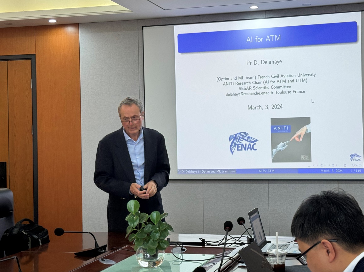 4月3日上午,必威西汉姆联成功举办第52期“民用航空讲坛”。法国国立民航大学(ENAC)研究实验室优化和机器学习团队负责人Daniel Delahaye教授受邀作题为AI for ATM Applications(人工智能在空中交通管理中的应用)的报告。必威西汉姆联副院长邵荃、师生代表参加报告会,报告由邵荃主持。