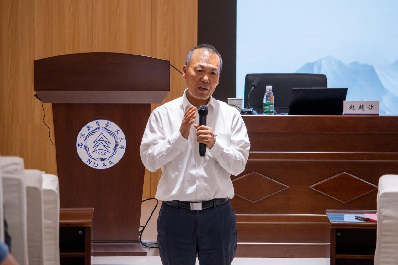 孙建红作总结讲话,他代表学院对赵越让的精彩讲座和精心准备表达由衷的敬意和感谢。他希望同学们坚守南航人的红色基因与蓝色梦想,牢记习近平总书记的殷殷期许——“我们一定要有自己的大飞机”“大飞机事业一定要办好”,在国产民机事业中勇担“强国有我”的使命,彰显民航青年担当。