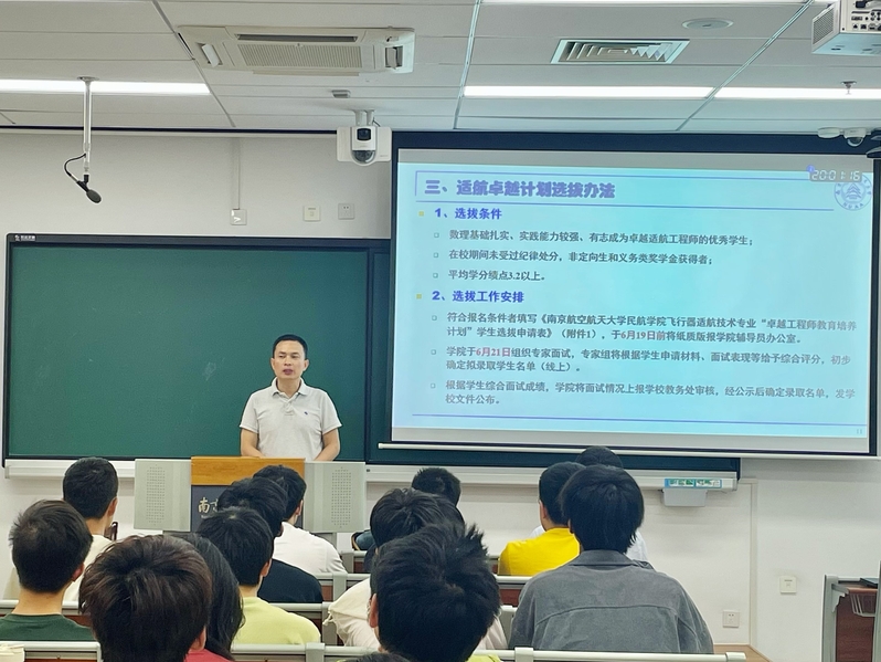6月17日,必威西汉姆联召开2023级空中交通管制与签派专业及飞行器适航技术专业“卓越班”选拔宣讲会。必威西汉姆联副院长、空中交通管制与签派专业负责人田勇,民航工程系支部书记、飞行器适航技术专业负责人陆中,2023级空管、适航专业学生,教学办、学工办工作人员参加宣讲会。