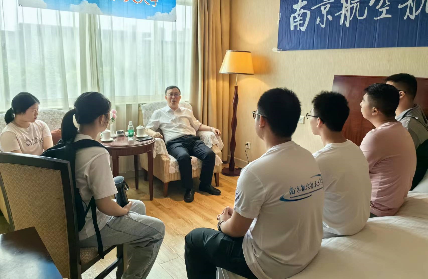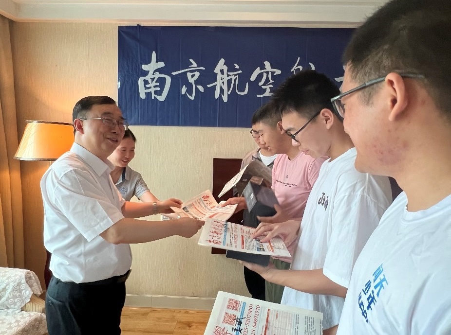 在招生现场,姜斌接待前来咨询的考生和家长,他介绍了南航的发展历程、专业布局和学科优势,解答考生有关志愿填报、专业选择和生涯规划等方面的困惑,鼓励考生第一志愿报考我校,投身祖国航空航天事业,并向拟报考考生赠送了航模留念。姜斌还看望慰问招生现场的老师们,他向招生宣传工作组的辛勤付出表示感谢,勉励招生组继续提振精神、昂扬斗志,全身心服务好前来咨询的考生及家长,全方位宣传好南航的办学特色与优势,努力开创招生宣传工作新局面,为学校生源质量再提升贡献更多智慧力量。