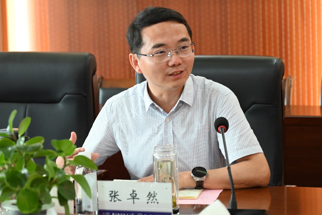 张卓然对何淼一行到访学院表示诚挚欢迎,回顾了与苏交科公司的友好合作,并详细介绍了学院在低空空域管理、通用航空系统运行规划、航空安全保障与应急救援等低空经济领域的相关科研方向和成果,以及在政-产-学-研-用合作方面的进展和布局,并表示期待双方在国家战略和行业发展中能继续合作产出新成果、作出新贡献。