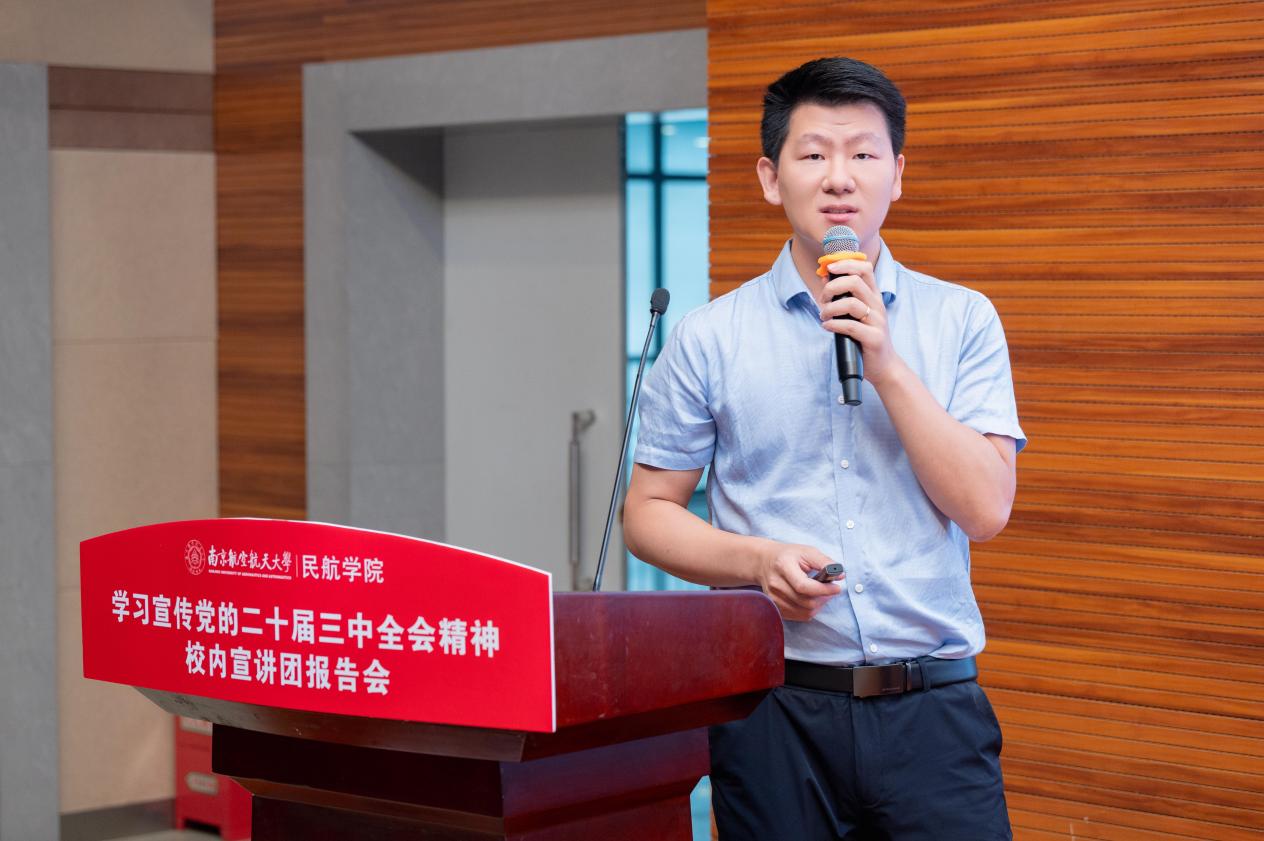 刘向雷以“学习贯彻二十届三中全会精神 加快民航绿色低碳转型”为题,围绕全会的基本情况、深刻领会和把握全会的重大意义、习近平总书记关于全面深化改革的重要论述、全会对进一步全面深化改革做出的重要部署等方面进行了系统全面的解读。重点阐释了二十届三中全会提出的深化生态文明体制改革相关内容,并针对国家提出经济社会全面绿色转型的重大需求,分享了对民航业绿色转型、绿色能源航空器研究的一些思考以及近年来学校在全电推进动力系统、混合动力、绿色航空燃料制备、航空器综合能量管理等研究领域取得的研究成果,希望民航师生们也能在“双碳”目标达成的道路上贡献出属于南航必威西汉姆联的智慧和力量。