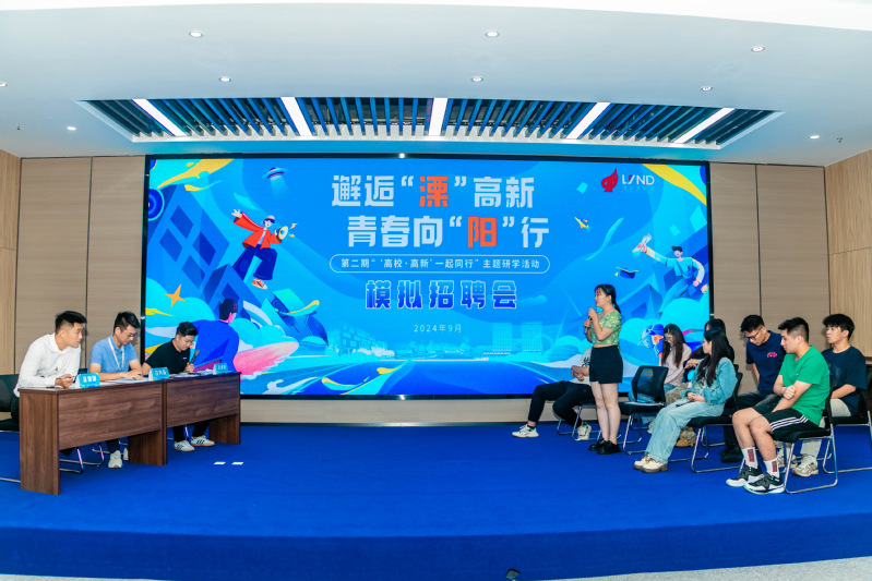 在“高新区规划展示”环节,讲解员结合溧阳发展历史、园区建设,介绍高新区打造企业集群、创优营商环境等方面的优秀成就,帮助学生深入了解溧阳高新发展历程。“人才招聘模拟”现场,学生提前感受招聘氛围,切身了解招聘流程,学习面试技巧,在校企融合的平台中感受高新技术企业资源环境。“科技实验参观”中,同学们在江苏时代能源科技有限公司、天目湖先进储能技术研究院等科技场所,参观了国际规模最大、电压等级最高的实验大厅,了解先进的储能技术,深刻体会到高新技术与实际生活的紧密相连。活动结束后,我院被授予“‘高校·高新’推介官”荣誉,一名学生获“最佳风采奖”。