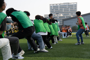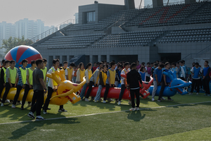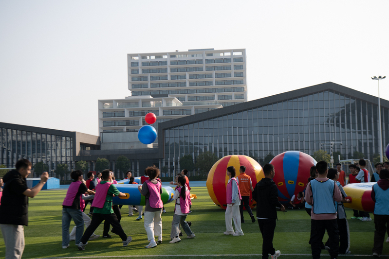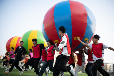 运动会包括旱地龙舟、运转乾坤、袋鼠运瓜、众星捧月、车轮滚滚和师生拔河等比赛项目,集趣味性、娱乐性、协作性和竞争性于一体,既是力量的角逐,又是智慧的较量;既是个人体育竞技水平的展示,又是对团队协作能力的检验。参赛师生同场竞技、团结协作,在比赛之余交流近期学习生活的情况,现场气氛热烈、趣味横生,各组队员默契配合、互相激励,尽情享受运动的乐趣。