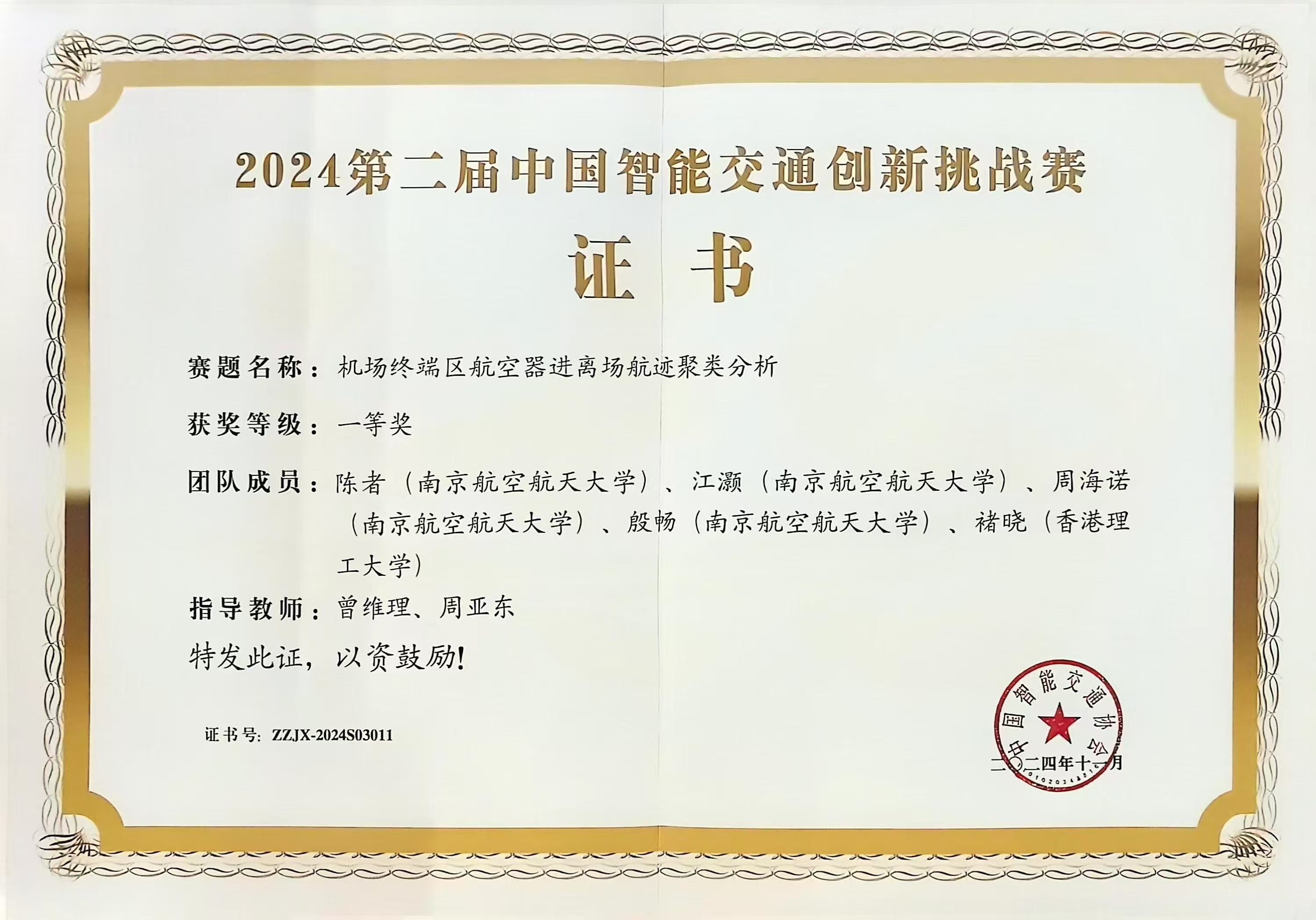 11月3日至6日,由中国智能交通协会主办的2024中国智能交通大会(ITSAC 2024)在杭州国际博览中心举行。必威西汉姆联曾维理、周亚东指导的学生团队获得空中交通赛题“一等奖”(排名第1)。