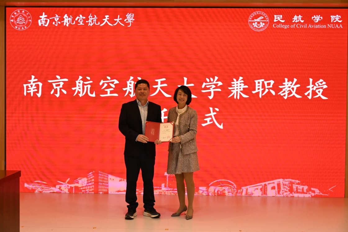 李君为张建平颁发兼职教授聘书。张建平表示,作为南航校友、民航院友,此次受聘为betway西汉姆联兼职教授,既是荣誉,更是责任。未来将积极履行南航兼职教授职责,进一步在学术交流、科研合作、人才培养等方面推进合作,为“交通强国”民航新篇章建设做出更大贡献。
