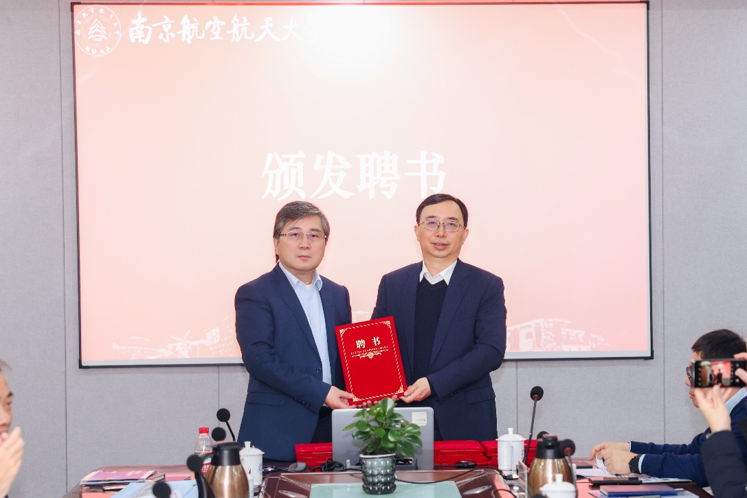 副校长徐正扬教授代表学校致欢迎辞。科学技术研究院综合处副处长王云平通报实验室主任调整情况和新一届学术委员会名单。姜斌向王自力院士颁发学术委员会主任聘书,并与王自力院士共同为学术委员会委员颁发聘书。会议开幕式由张卓然主持。