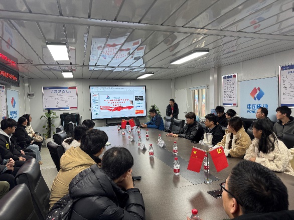中国电建华东科创中心技术人员详细介绍智慧工地管控平台的总体架构和各类应用,重点讲解工业化应用、BIM技术融合、智能生产、成本控制、智能装备、质量管理、安全监控、绿色节能以及智能巡检等在工地的实际应用情况。随后,同学们就智能建造的实施现状、行业就业前景、面临的挑战以及未来的发展方向等问题与中心项目经理和总工程师等进行了交流。