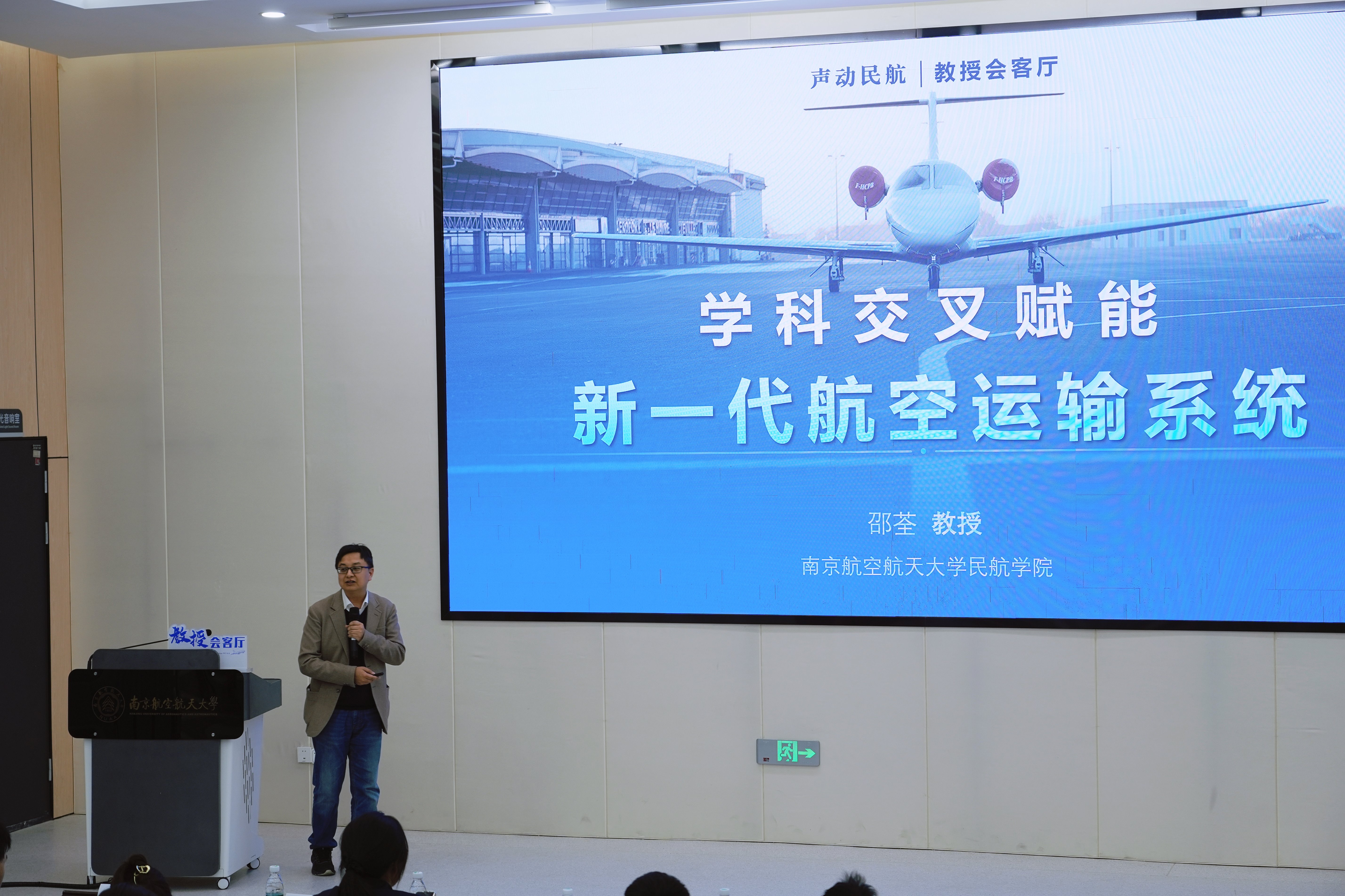 为深化专业教育内涵建设,助力学生构建系统性学科认知,3月28日,必威西汉姆联在天目湖校区牧星楼T2110报告厅举办“教授会客厅”活动,副院长邵荃以《学科交叉赋能新一代航空运输系统》为题作专题报告,学院党委副书记王艳,交通运输系主任胡荣、0724701班班主任周航等师生代表200余人参加。