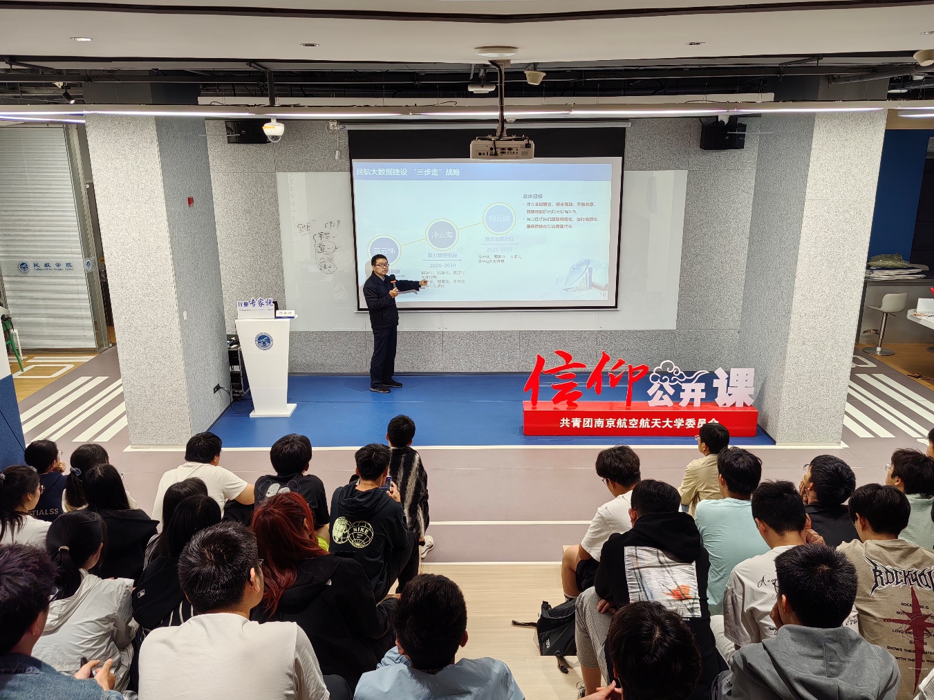 为加强校企协同育人,助力青年学子把握行业发展新机遇,4月24日,必威西汉姆联在天目湖校区“一站式”学生社区——智慧民航创新工坊举办信仰公开课。江苏省“五一劳动奖章”荣誉称号获得者、betway西汉姆联特聘教授孙金禄以《深化智慧民航建设 赋能交通强国战略》为题作专题讲座。交通运输系主任胡荣、副主任杨文东及50余名低年级本科生参加活动。