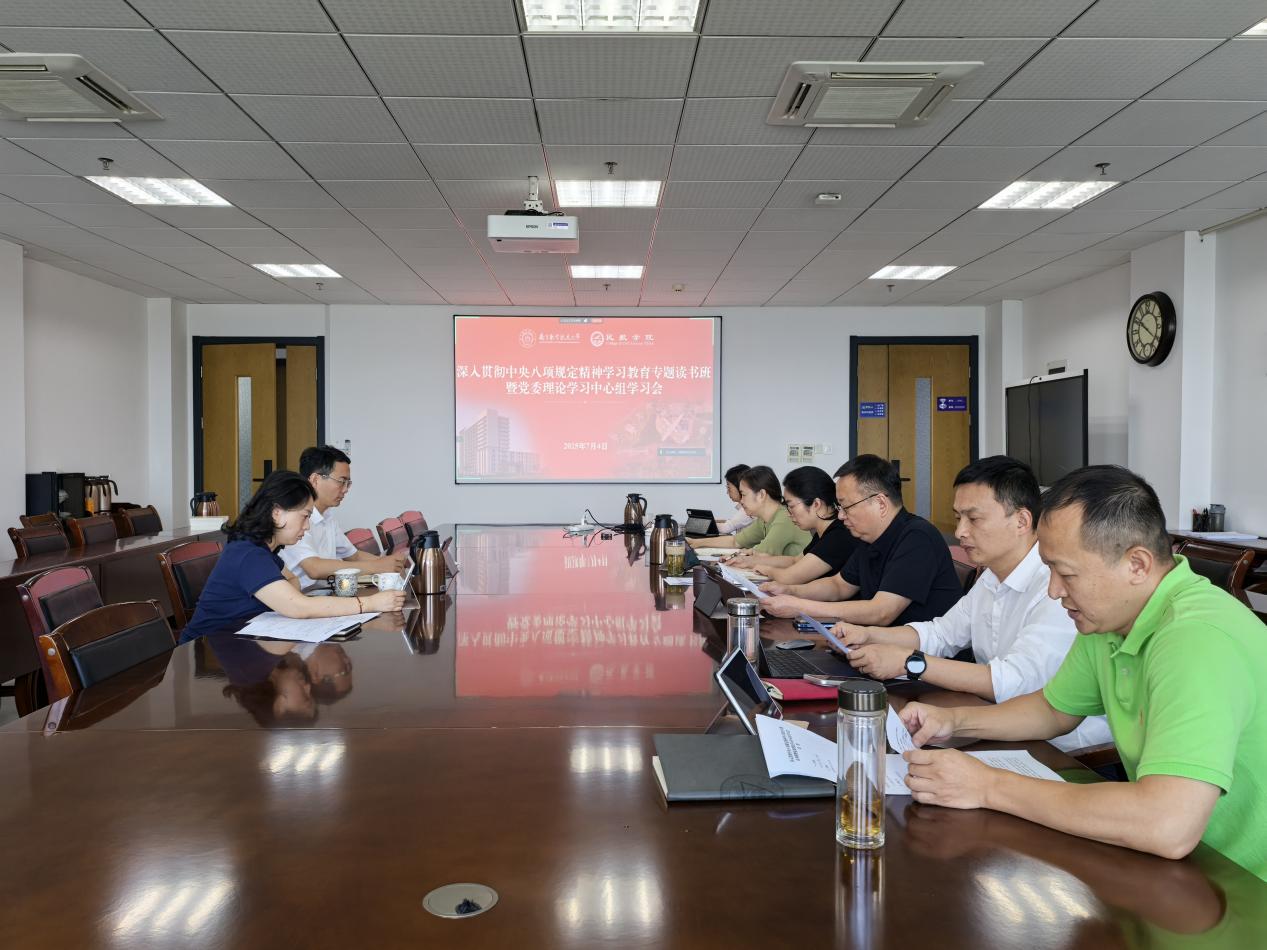 党委副书记王艳领学《中央八项规定及其实施细则等法规文件中关于禁止违规吃喝的规定要求》,结合违纪违法案例开展警示教育,并表示党员干部要深刻认识违规吃喝问题的政治危害,严格落实“一岗双责”,加强对分管领域同志的教育、管理和监督,自觉净化社交圈、生活圈、朋友圈,不碰红线、不触底线。党委委员耿飞领学习近平总书记在中共中央政治局第二十一次集体学习时的重要讲话精神。他表示,要以习近平总书记重要讲话为指引,把新时代党的自我革命要求认真落实到位,进一步提高认识,增强党性,把改进作风与为师生办实事相贯通,高质量落实立德树人根本任务。